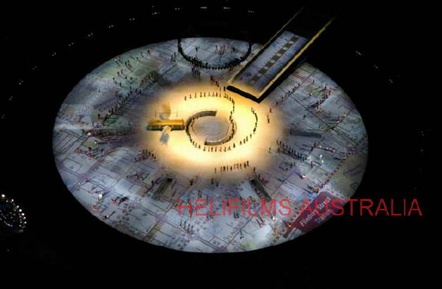 Aerial Photo of the MCG at the Opening Ceremony of the Commonwealth Games Melbourne Australia 2006, taken by Jane Morrison, Helifilms Australia.