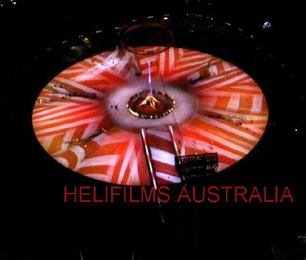 Aerial Photo of the MCG at the Opening Ceremony of the Commonwealth Games Melbourne Australia 2006, taken by Jane Morrison, Helifilms Australia.