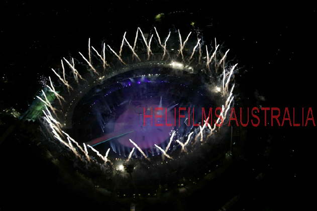 Aerial Photo of the MCG at the Opening Ceremony of the Commonwealth Games Melbourne Australia 2006, taken by Jane Morrison, Helifilms Australia.